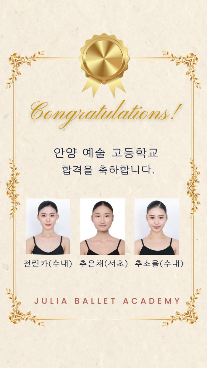 [줄리아서초&수내] 2026년도 안양 예술 고등학교 신입, 편입학 합격을 축하합니다!