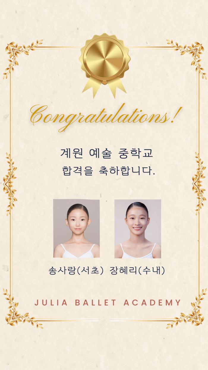 [줄리아서초&수내] 2026년도 계원예술중학교 신입학 합격을 축하합니다!
