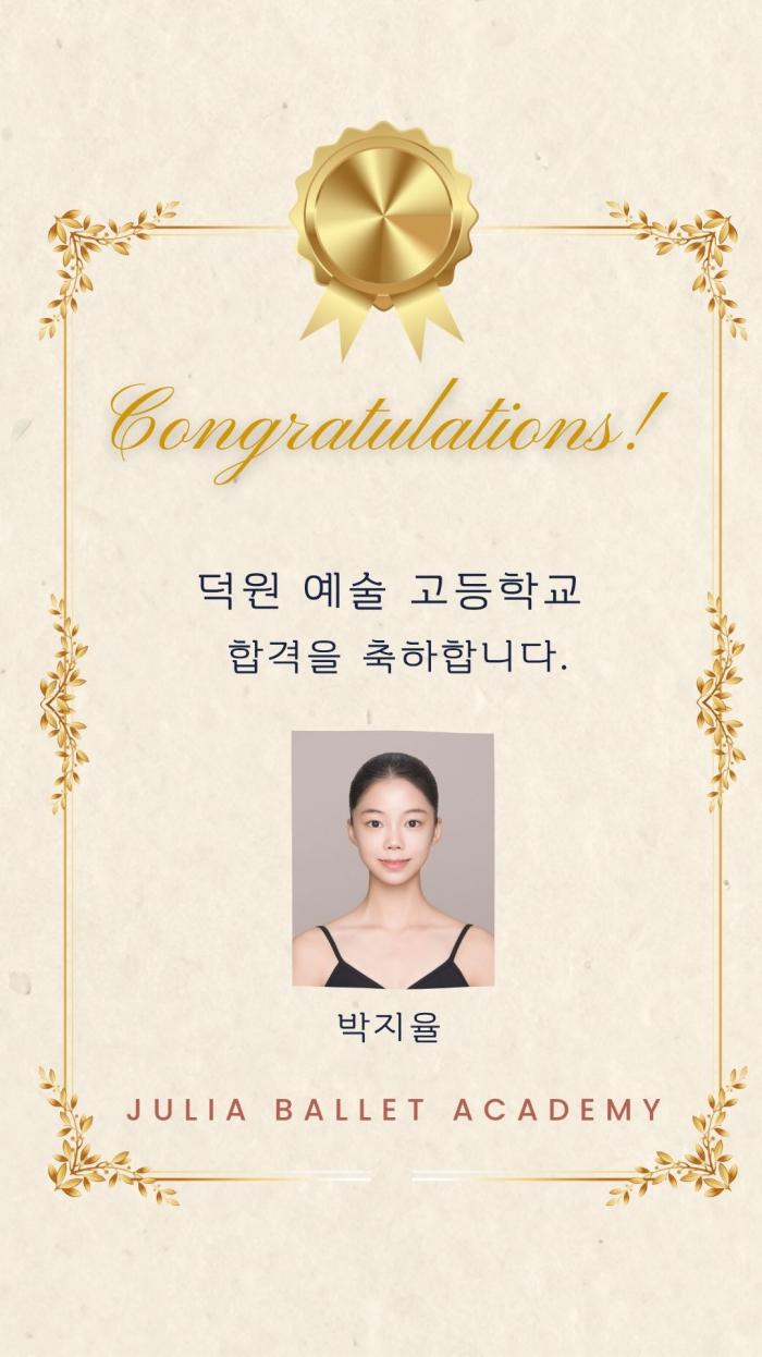 [줄리아서초] 2026년도 덕원 예술 고등학교 신입학 합격을 축하합니다!